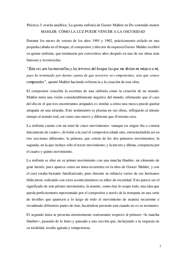 Práctica: reseña desde el punto de vista didáctico sobre la Quinta Sinfonía de Mahler