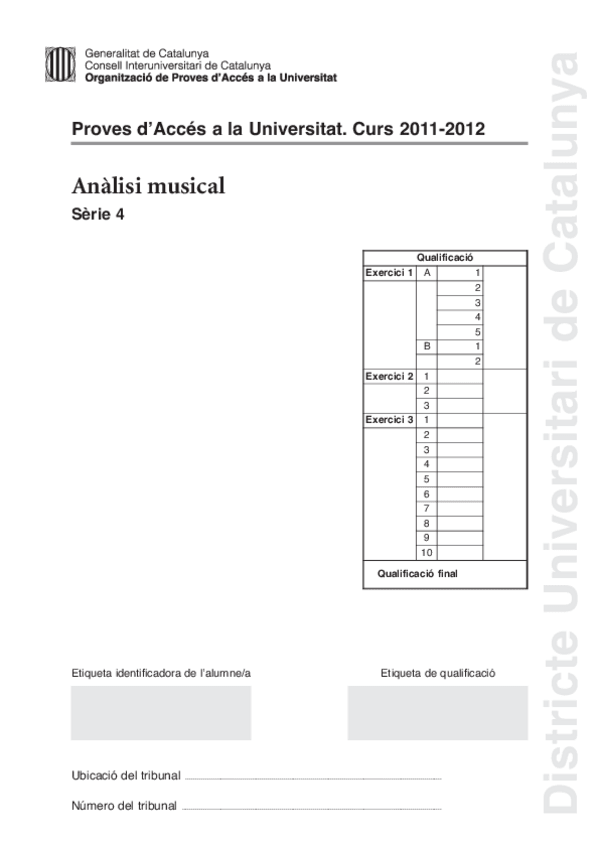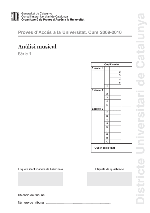 Exámenes Análisis Musical PAU 2022