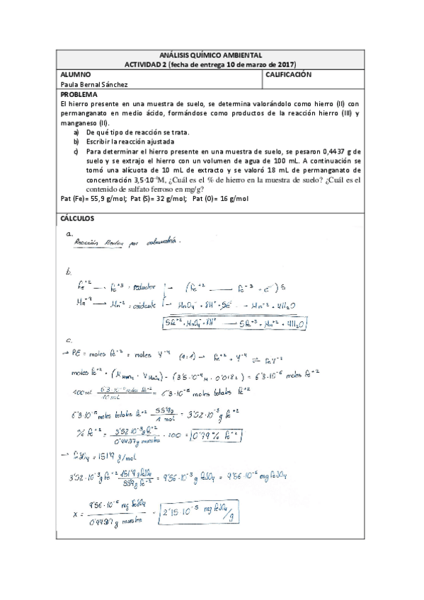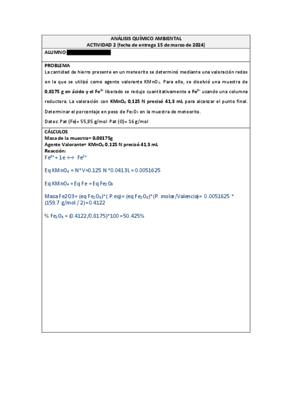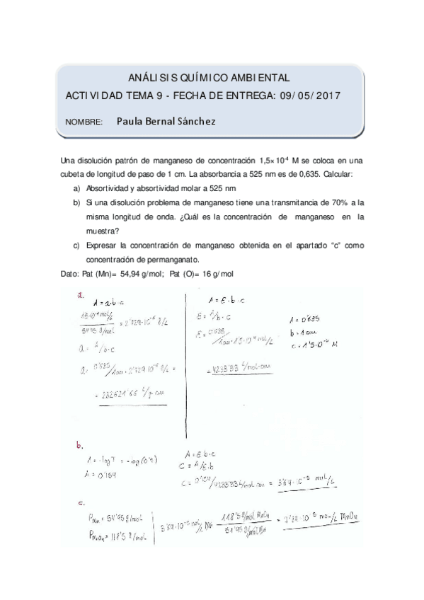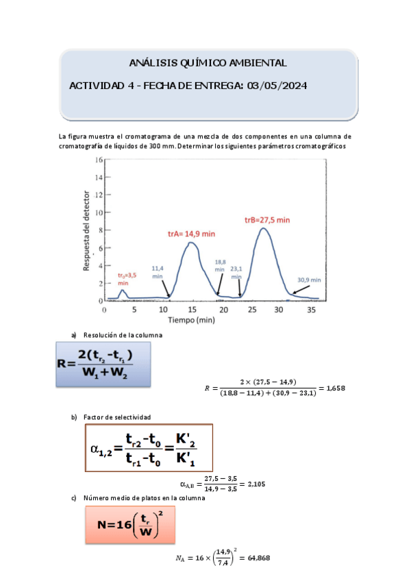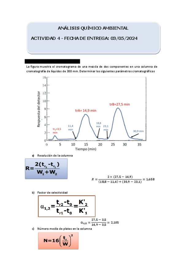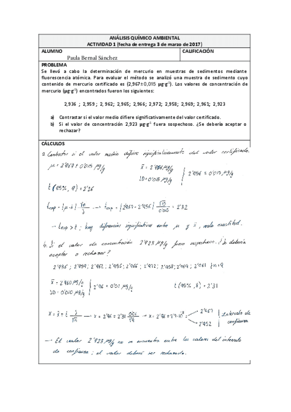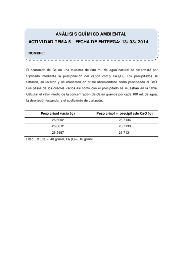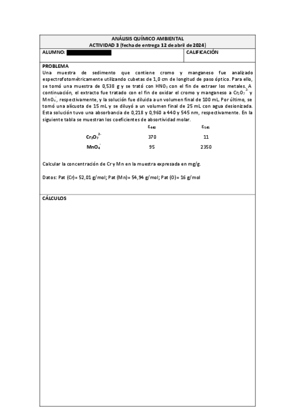 He publicado nuevos ejercicios de 1º Análisis químico ambiental: Entregas Obligatorias