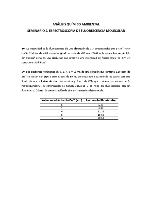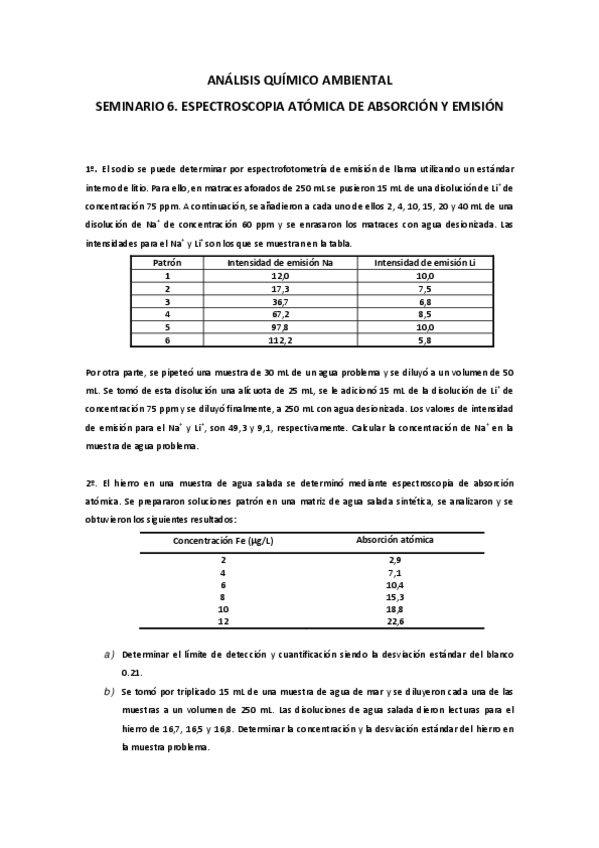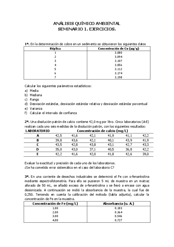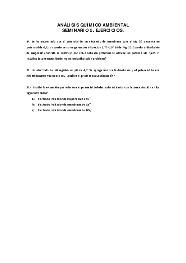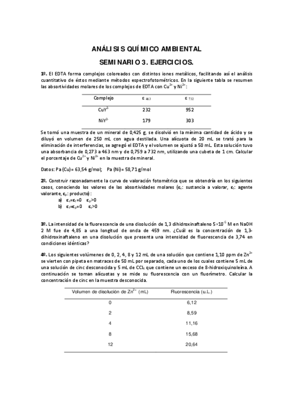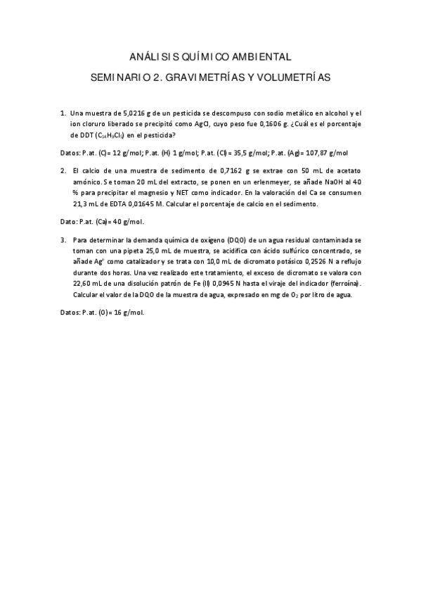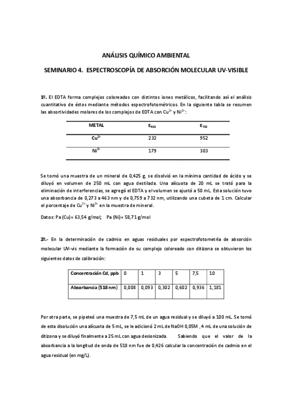 He publicado nuevos ejercicios de 1º Análisis químico ambiental: Seminarios