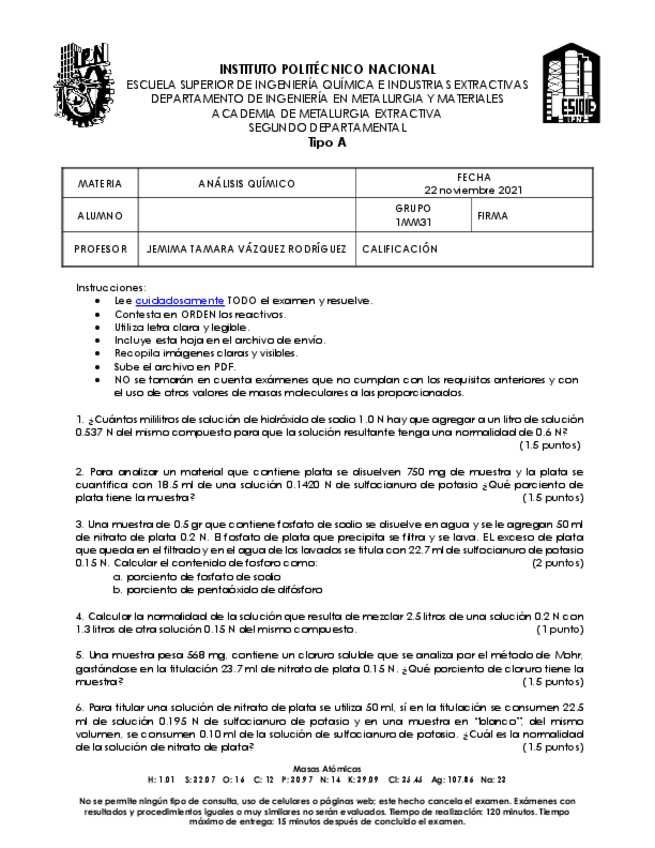 Exámenes Análisis Químico