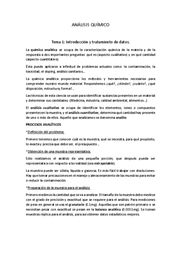 Análisis químico - apuntes efectivos