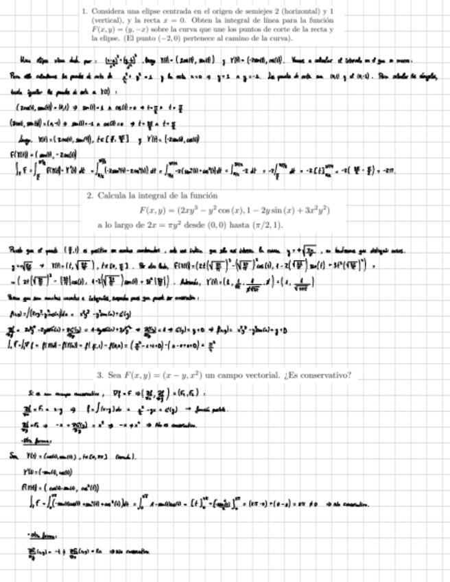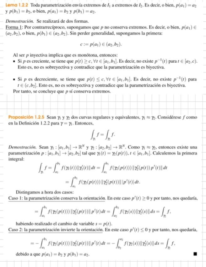 Demostraciones redactadas para el primer parcial: - Las parametrizaciones llevan extremos a extremos. - Proposiciones sobre las integrales de línea de curvas equivalentes. - Integral de línea para curvas regulares cerradas = 0. - F es conservativo en cto