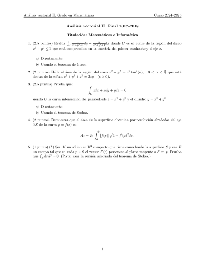 Análisis vectorial II. Exámenes✅