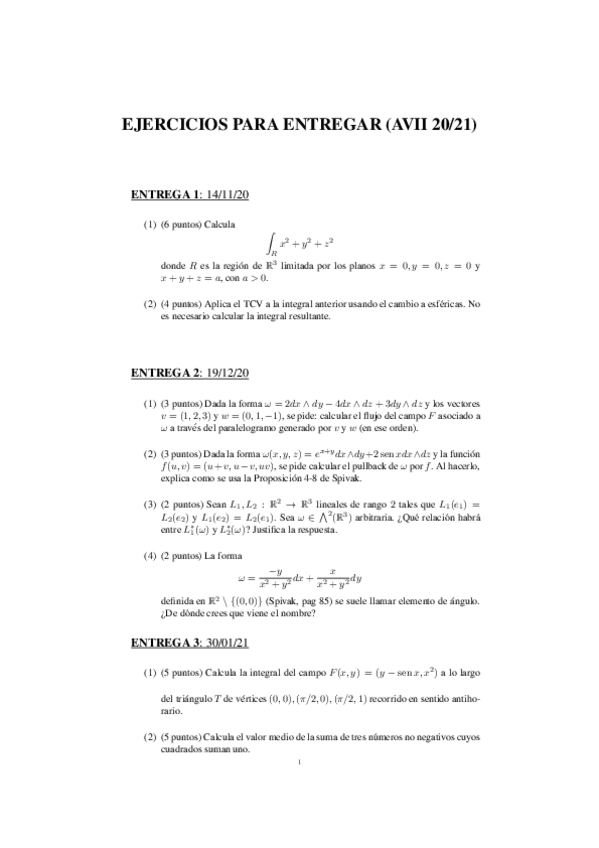 He publicado nuevos trabajos de 3º Análisis Vectorial II: Entregas ejercicios