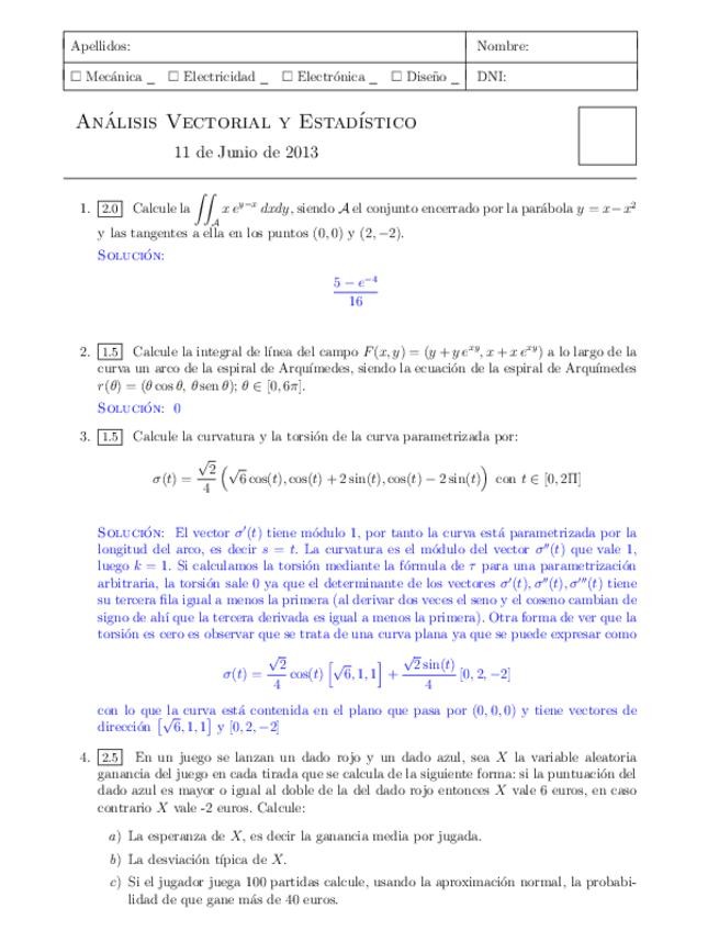 He publicado nuevos apuntes de 1º Análisis Vectorial y Estadístico: ExAvE201406Sol.pdf