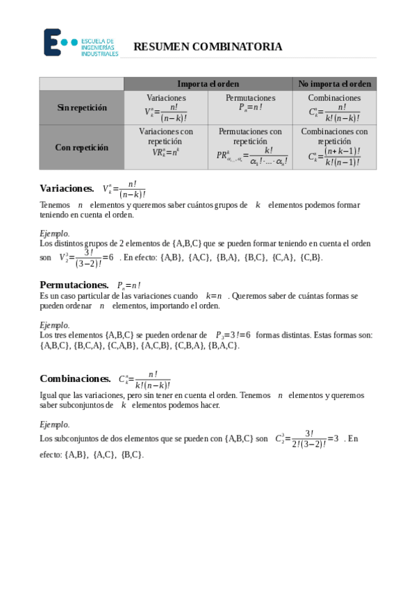 He publicado nuevos apuntes de 1º Análisis Vectorial y Estadístico: Resumen-Combinatoria-Estadistica-Benjamin.pdf