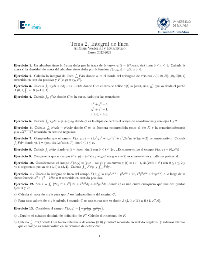 He publicado nuevos ejercicios de 1º Análisis Vectorial y Estadístico: Ejercicios-tema-8.pdf