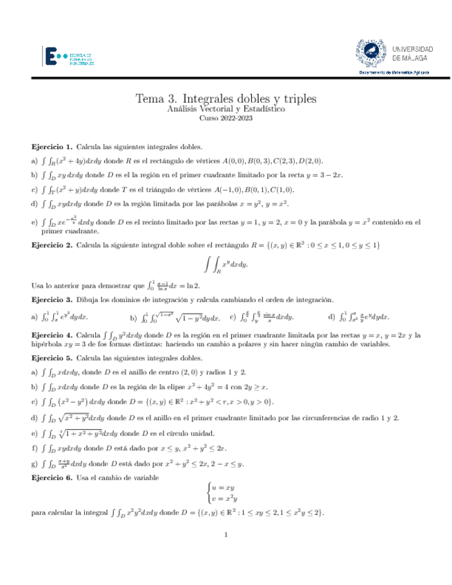 He publicado nuevos ejercicios de 1º Análisis Vectorial y Estadístico: Ejercicios-tema-5.pdf
