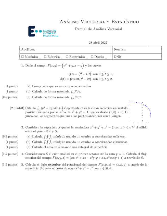 He publicado nuevos examenes de 1º Análisis Vectorial y Estadístico: Parciales-Análisis Vectorial-Benjamín