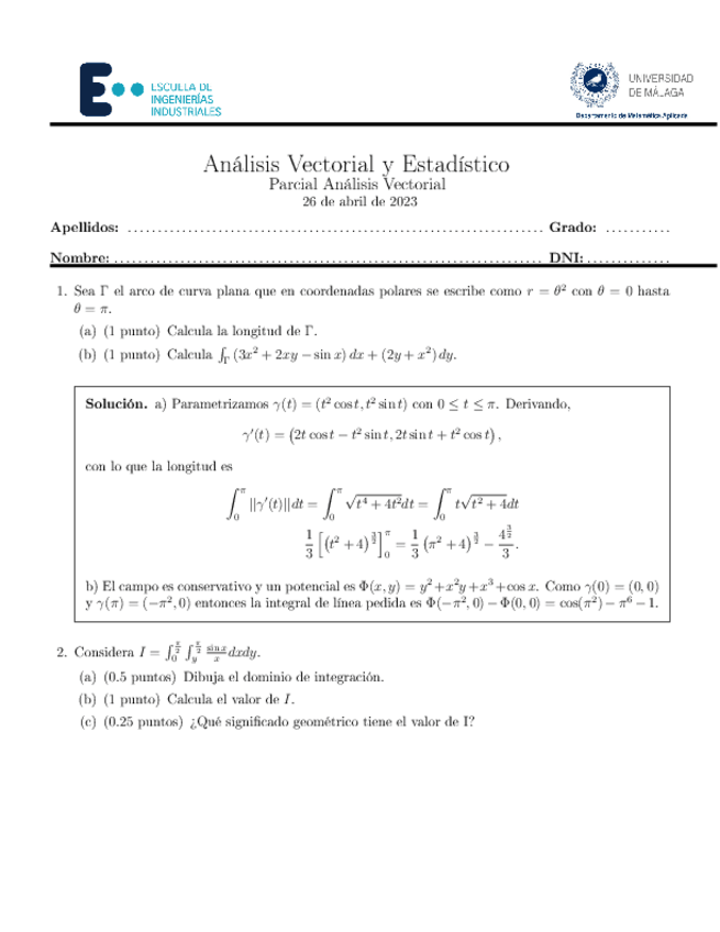 Exámenes resueltos-Analisis Vectorial y Estadístico