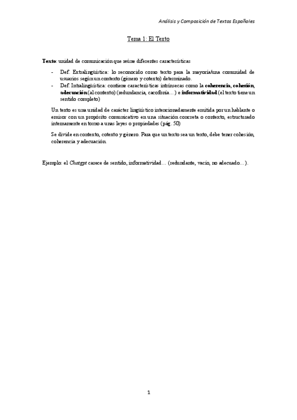 Tema 1: El Texto. Análisis y composición de textos españoles, 1 de Tei.