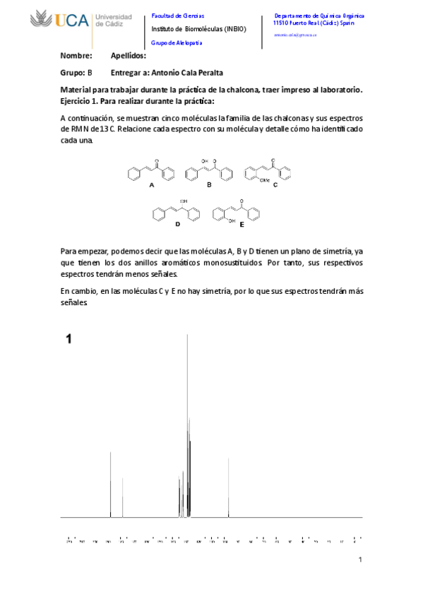 He publicado nuevos practicas de 3º Análisis y Determinación Estructural de Productos Naturales: AAD-P6-chalcona.pdf