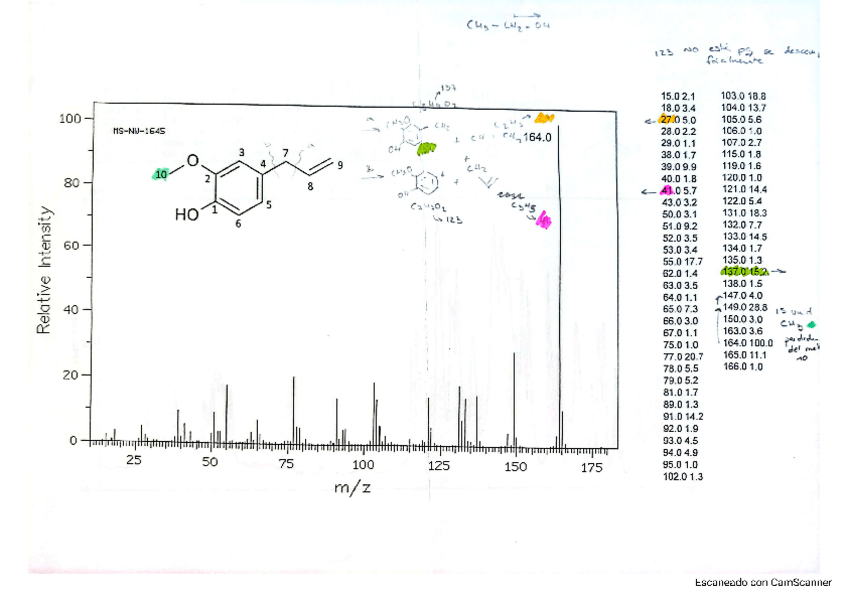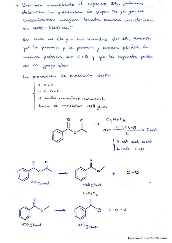 Solucionado de forma agradable y entendible, no dudes en descargar!! Ojito con el ión del espectro de masas de 136 ua, tiene lo suyo.