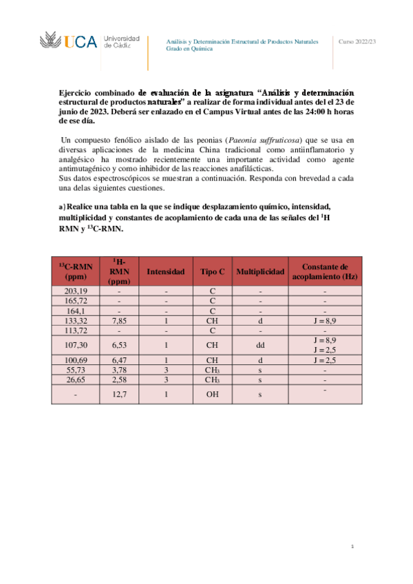 He publicado nuevos trabajos de 3º Análisis y Determinación Estructural de Productos Naturales: Ejercicio-Combinado.pdf