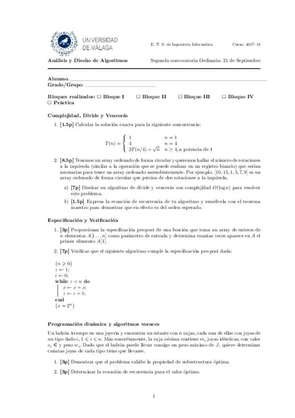 He publicado nuevos ejercicios de 2º Análisis y diseño de algoritmos: EjerciciosEspecmerged.pdf