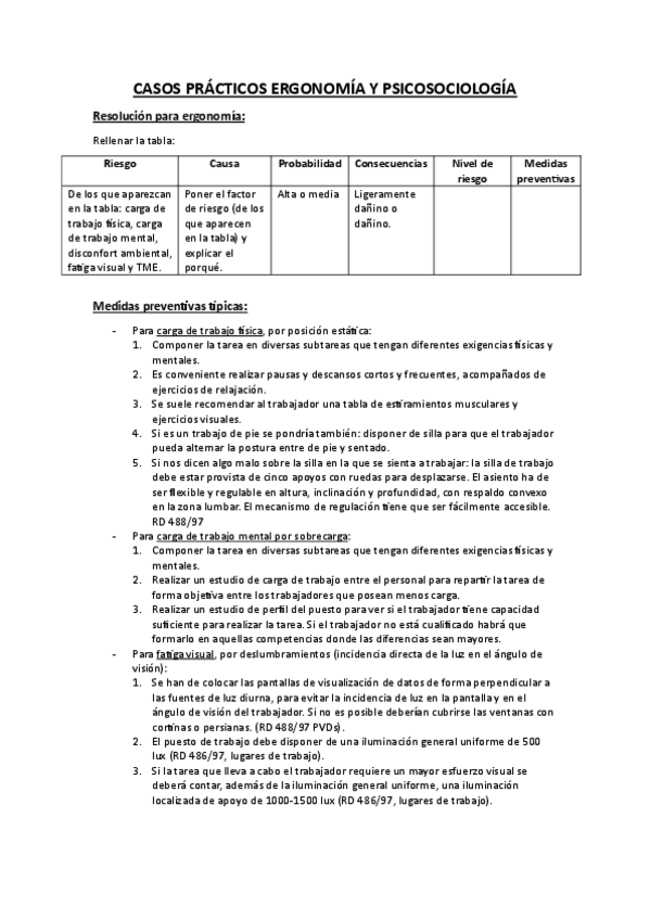 Casos prácticos ERGONOMÍA Y PSICOSOCIOLOGÍA