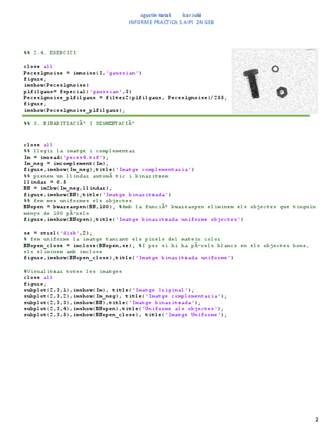 Codi i informe de la pràctica 2 de l'assignatura de anàlisi i procesament d'imatges.