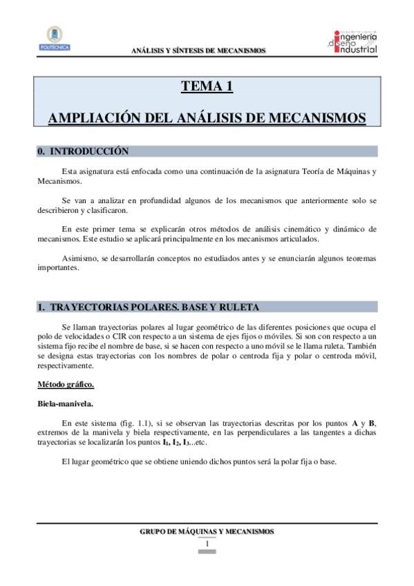 He publicado nuevos apuntes de 3º ANÁLISIS Y SÍNTESIS DE MECANISMOS: ASM-Tema1.pdf
