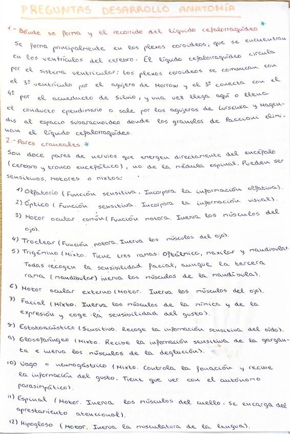 Algunos apuntes, esquemas y posibles preguntas de Anatomía tanto de Arranz como de Amat.
