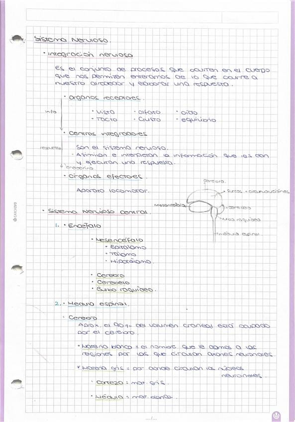 Apuntes esquemáticos y organizados por colores sobre el sistema Nervioso.
