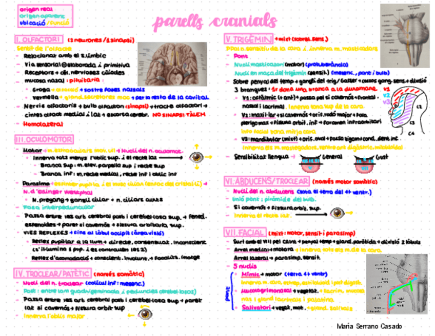 He publicado nuevos apuntes de 2º Anatomía del Sistema Nervioso y Órganos de los Sentidos: PARELLS-CRANIALS-Resum.pdf