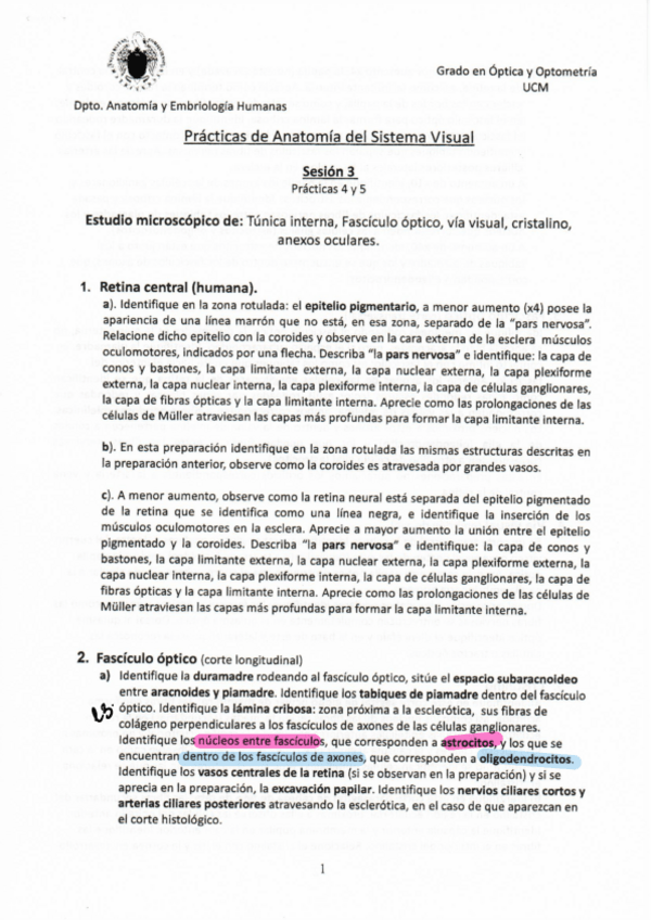 He publicado nuevos practicas de 1º Anatomía del Sistema Visual: Dibujos-microscopio.pdf