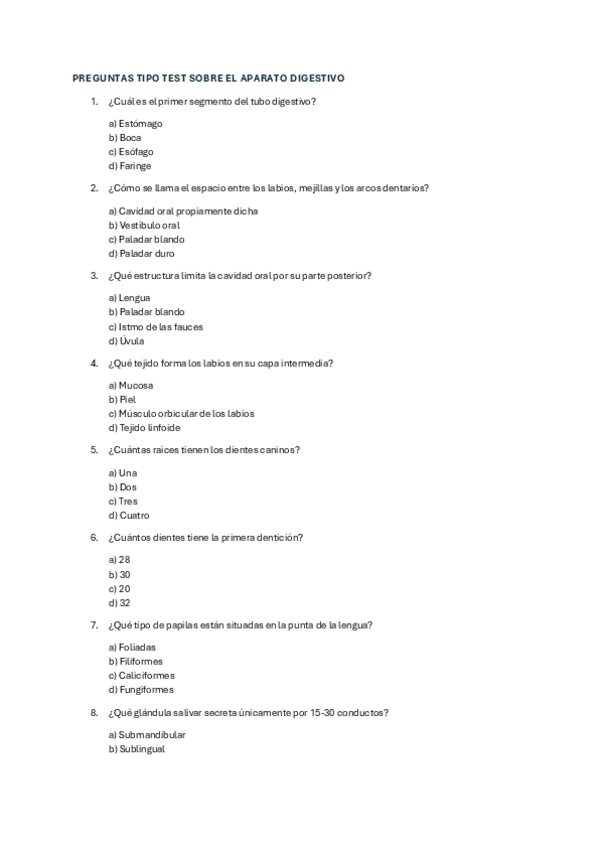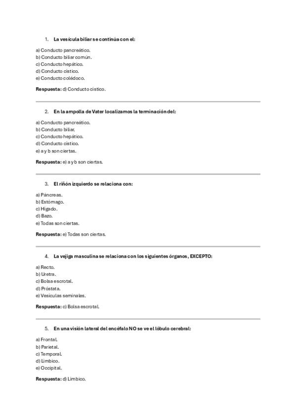 PREGUNTAS DE AÑOS ANTERIORES DE EXÁMENES DE ANATOMIA HUMANA.