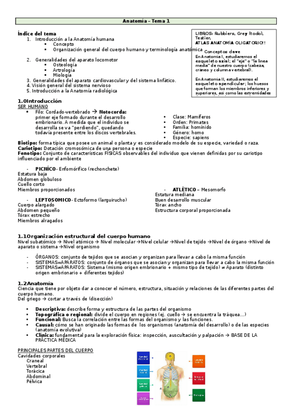 Apuntes de anatomía I completos divididos por temas
