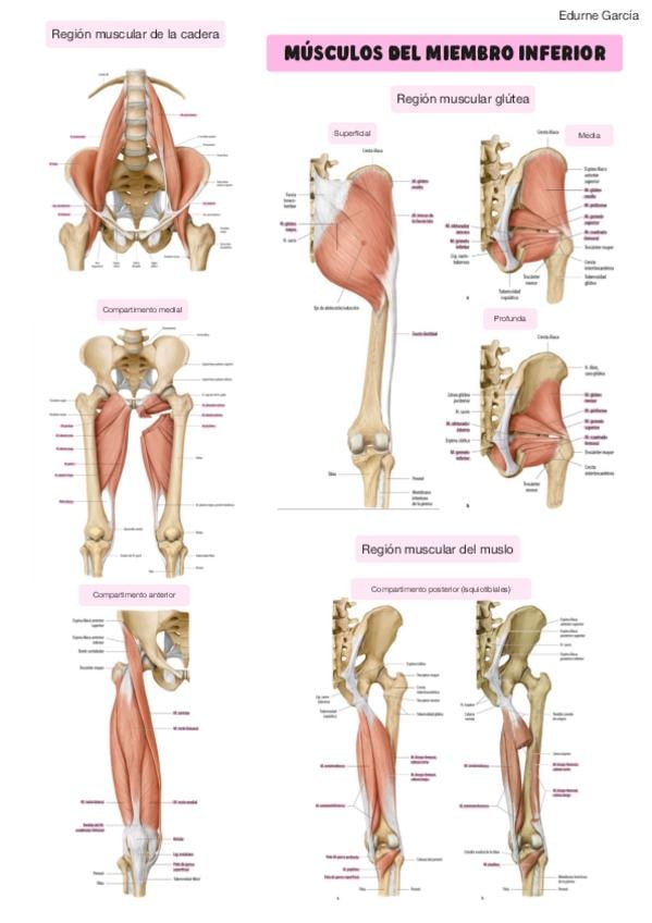 Apuntes COMPLETOS y con IMÁGENES de los músculos anteriores y posteriores del muslo