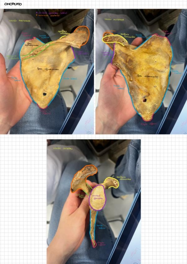 Apuntes con fotos prácticas marcadas para estudiar tanto el teórico de Anatomía General/Locomotor como sus prácticos. Fotos de la extremidad superior, sin incluir la mano.