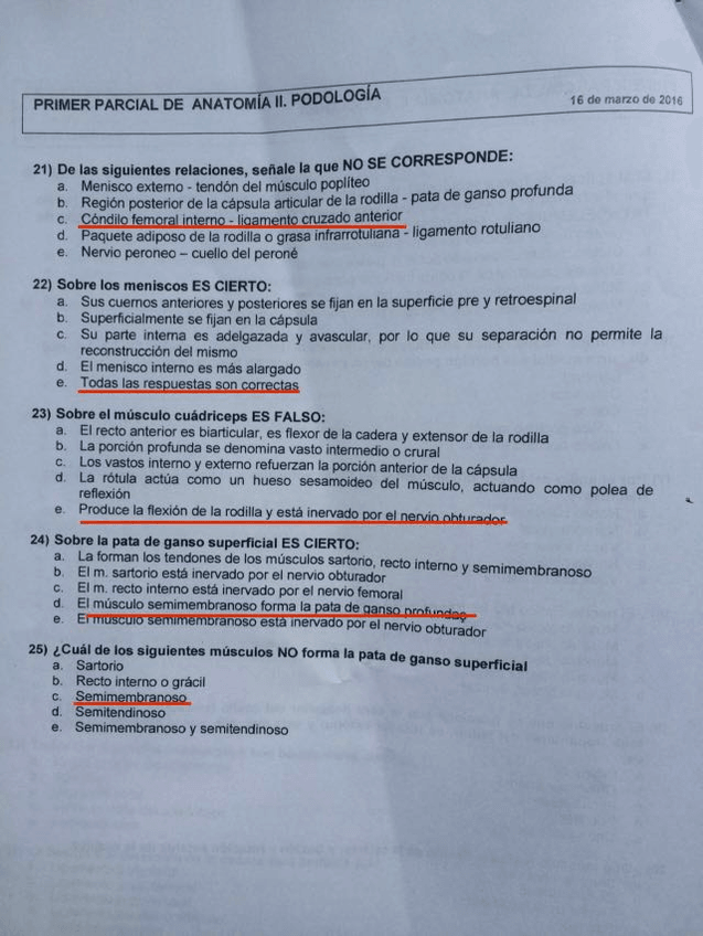 He publicado nuevos examenes de 1º Anatomía Humana del Miembro Inferior: Respuestas-examen-2o-parcial.pdf