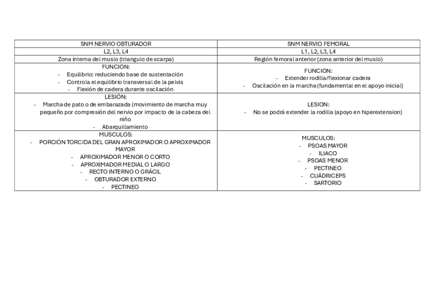 tablas resumen de todos los sistemas neuromusculares que caen en el examen