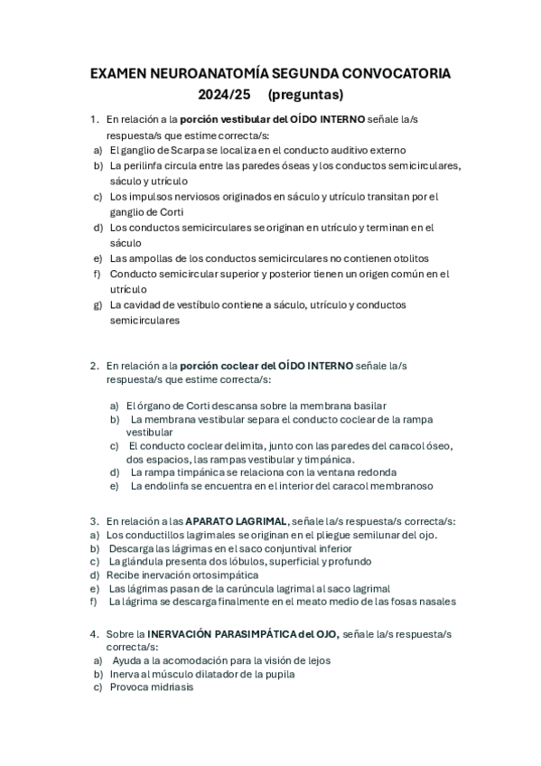 He publicado nuevos examenes de 2º Anatomía Humana: Estesiología y Sistema Nervioso: PREGUNTAS-EXAMEN-NEUROANATOMIA.pdf
