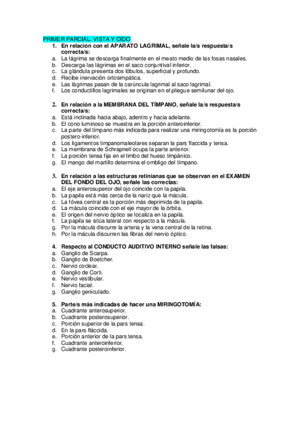 He publicado nuevos examenes de 2º Anatomía Humana: Estesiología y Sistema Nervioso: examen 1