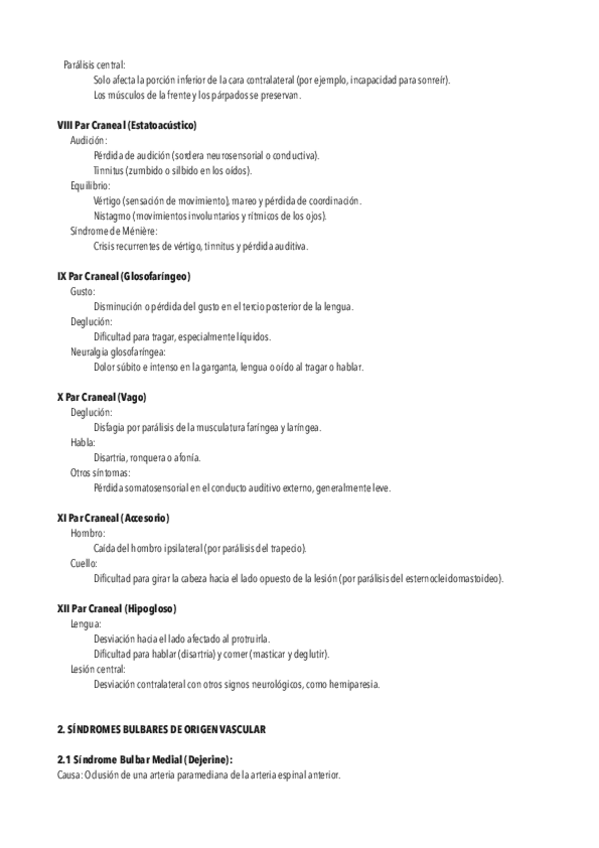 Para la clínica, en esta tabla recogí los síntomas de las lesiones de los pares y sus causas (irrigación, enfermedades o daños) )