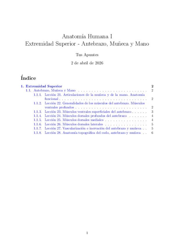 He publicado nuevos apuntes de 1º Anatomía Humana I: Extremidad-Superior-Antebrazo-Muneca-y-Mano.pdf