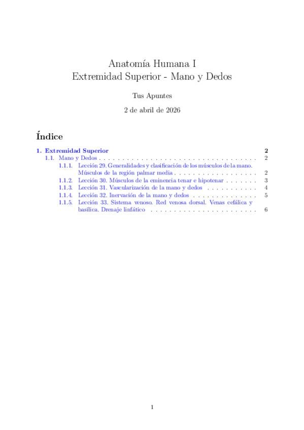 He publicado nuevos apuntes de 1º Anatomía Humana I: Extremidad-Superior-Mano-y-Dedos.pdf