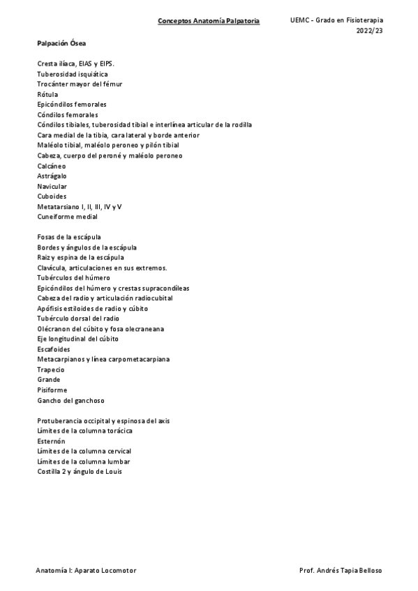 He publicado nuevos apuntes de 1º Anatomía humana I: aparato locomotor: Palpacion-osea.pdf