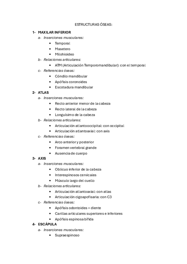 Apuntes para el estudio de los músculos y huesos del examen oral (todos los que se preguntaron en curso 24-25)