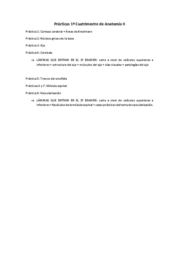 Las prácticas del 1º Cuatri son bastante teóricas y de señalar estructuras. Os dejo el índice de las prácticas que vimos, junto con algunas láminas que los profes nos dijeron que iban a caer, y cayeron. Estudiarlas bien!!