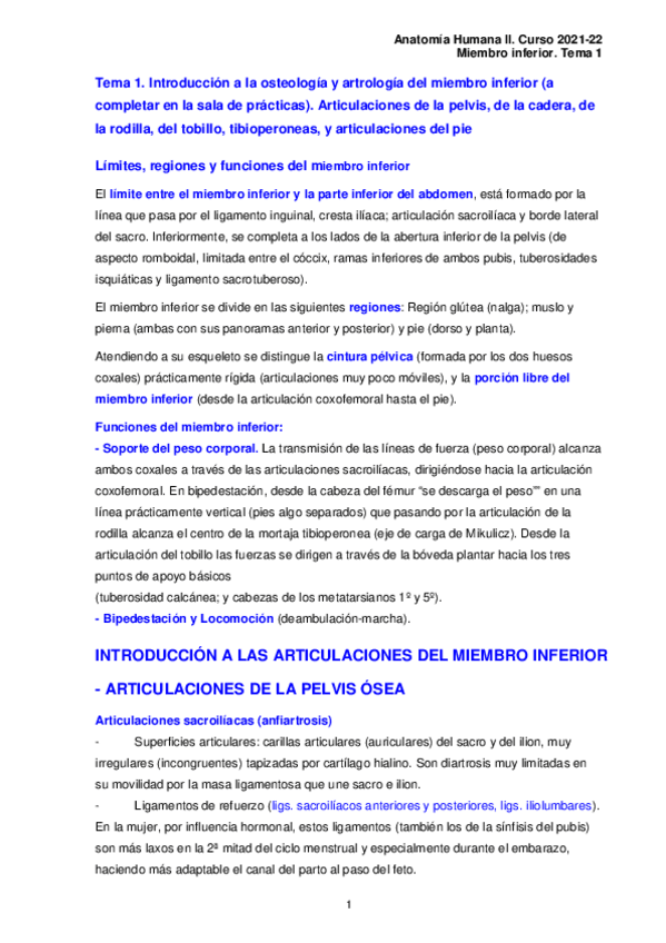 He publicado nuevos apuntes de 1º Anatomía Humana II: BLOQUE II - Miembro inferior