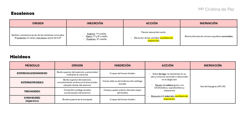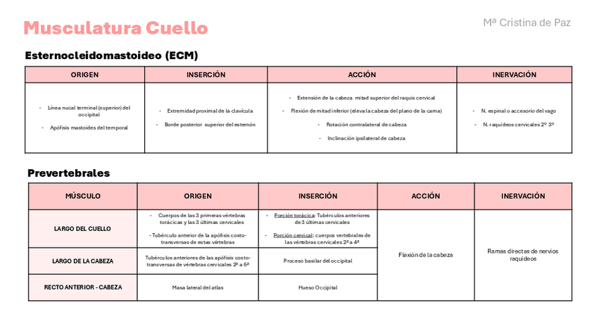 Tablas de músculos del primer parcial de Anatomía II. 1º Medicina UCAM