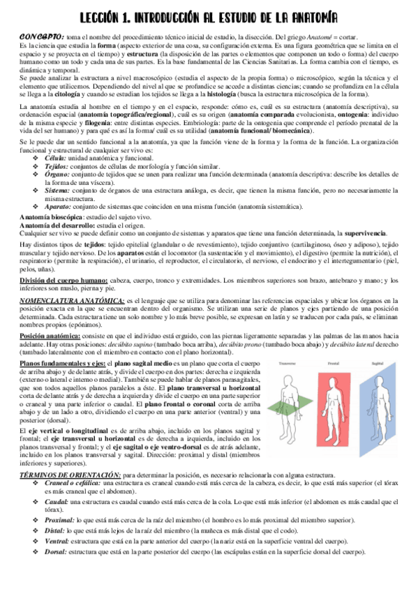 Lecciones primer parcial teoría anatomía