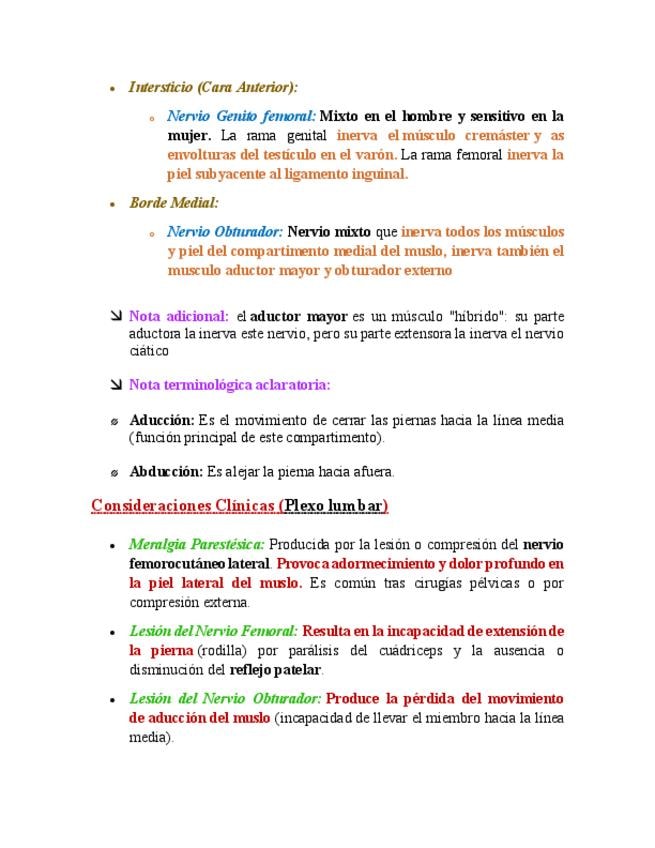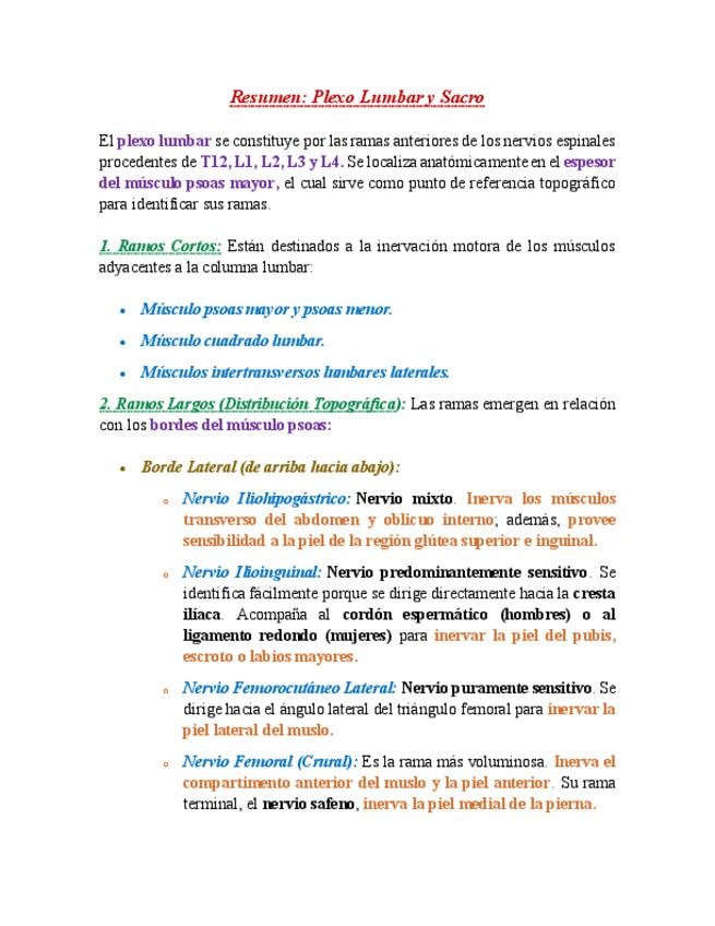 Resumen: Plexo Lumbar y Sacro con consideraciones clínicas importantes.