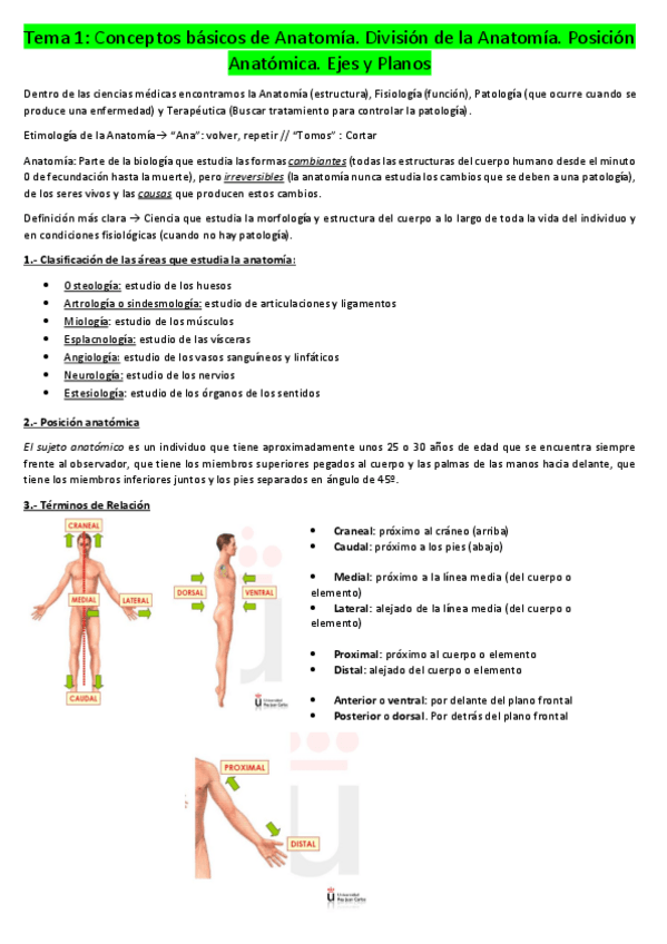 Tema 1.- Conceptos básicos de Anatomía. División de la Anatomía. Posición Anatómica. Ejes y Planos.pdf