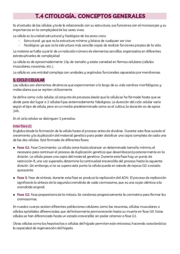 Introducción a la anatomía: Concepto, posición y terminología anatómicas. Perspectiva histórica. Histología general: Concepto y tipos de tejido. Citología: ciclo celular Embriología general: Gametogénesis. Fecundación. Desarrollo embrionario y fetal. Plac