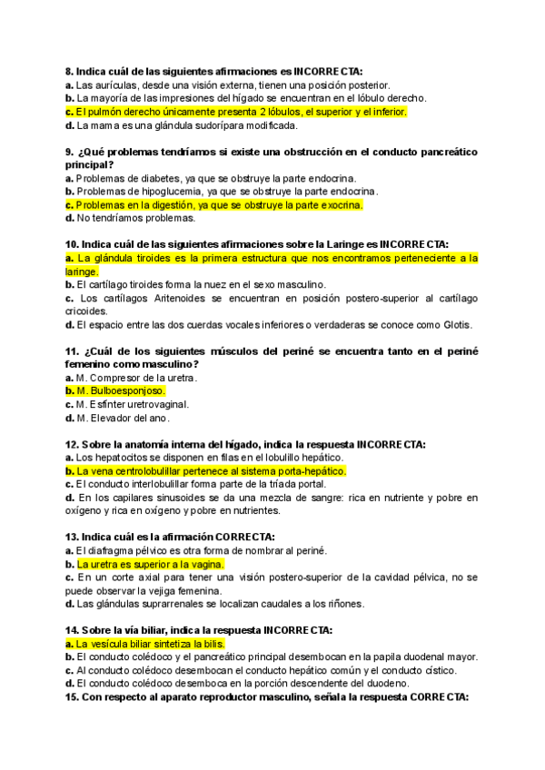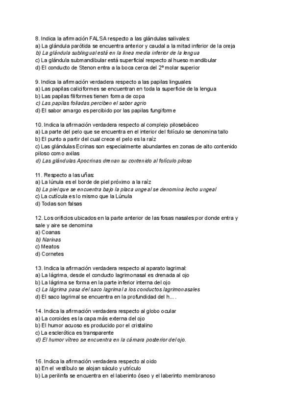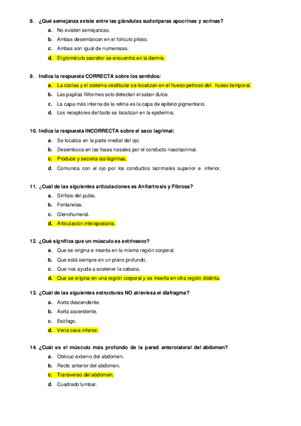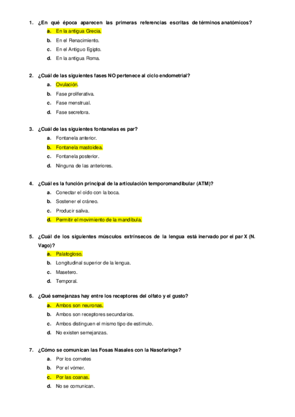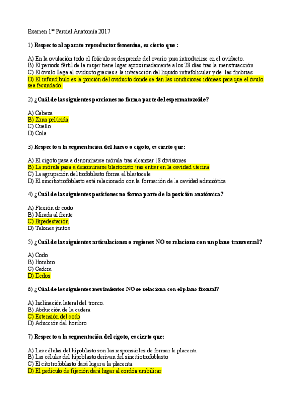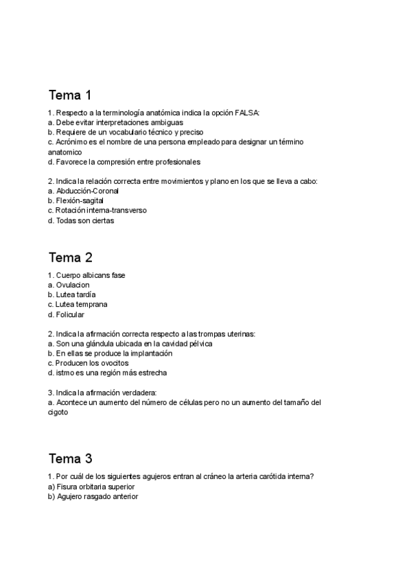 Recopilación preguntas de examen Primer parcial Anatomía Humana