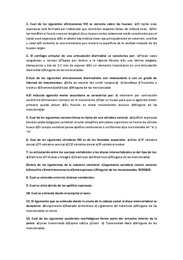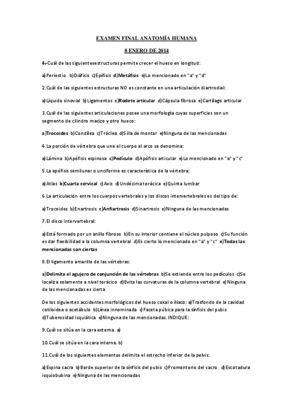 Exámenes sueltos Anatomía Humana