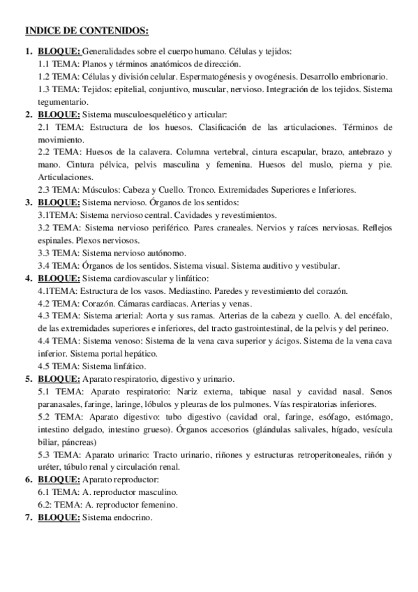 Resúmenes esquema del temario de la asignatura de anatomia humana